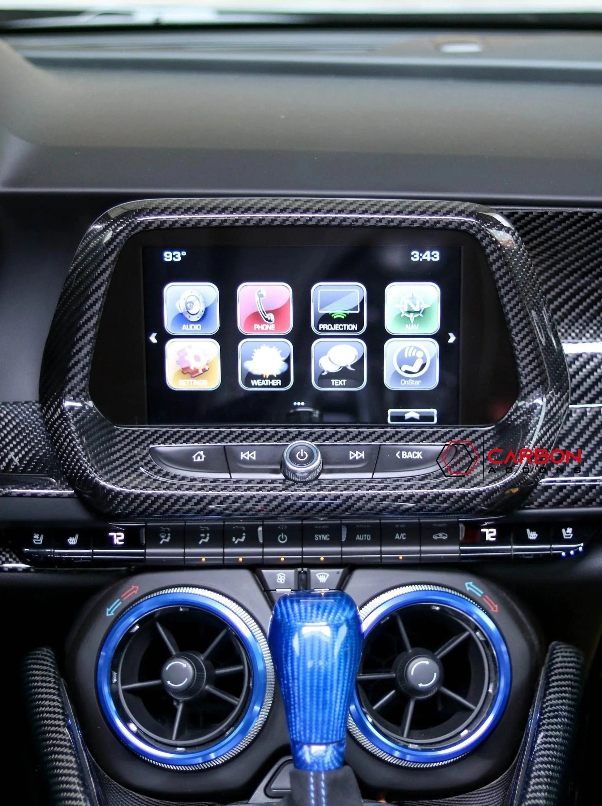 2016-2024 Chevy Camaro Carbon Fiber Infotainment Radio Screen Trim Cover