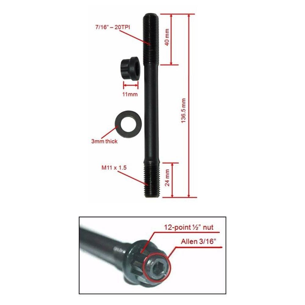 - M11 Thread studs, please be sure that your OEM bolts have the same thread before purchase